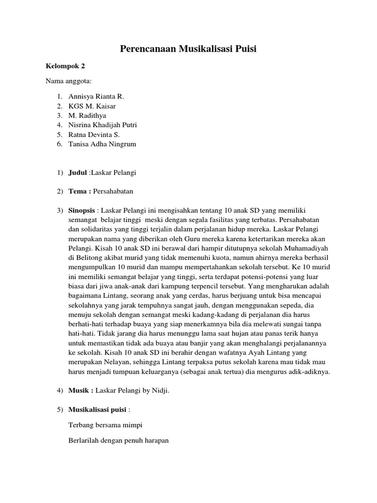 Musikalisasi Puisi Laskar Pelangi Brainly Co Id