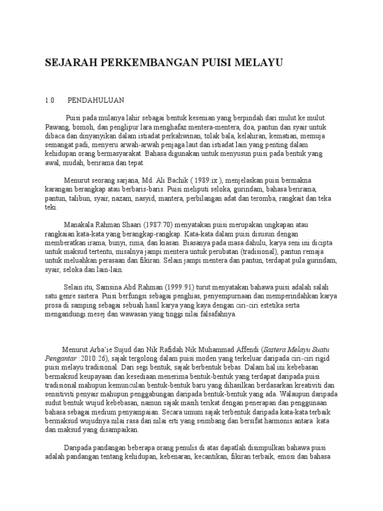 Sejarah Perkembangan Puisi Melayu