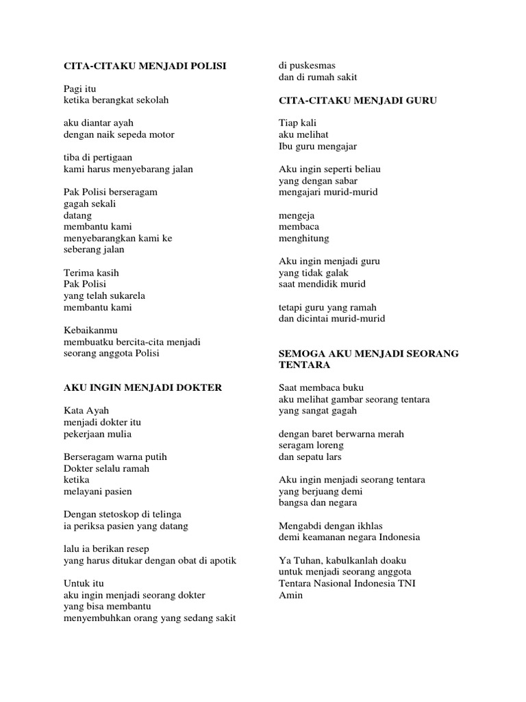 Contoh Puisi Cita Cita Menjadi Guru Dokter Polisi Dan Tentara Penulis Cilik
